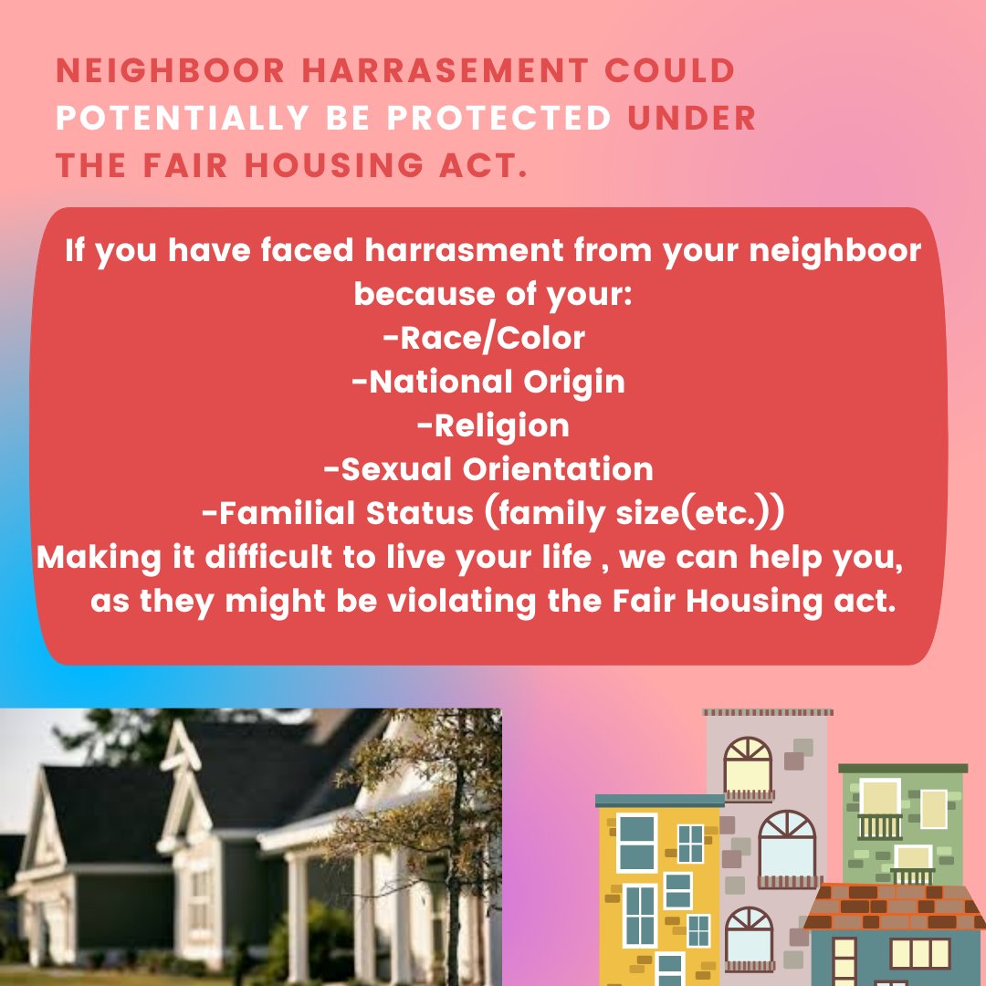 The Fair Housing Act makes it illegal to harass persons because of race color religion sex including gender identity and sexual orientation disability familial status or national origin. It is illegal to discriminate against individuals and families who have minor children in their household pregnant women or.